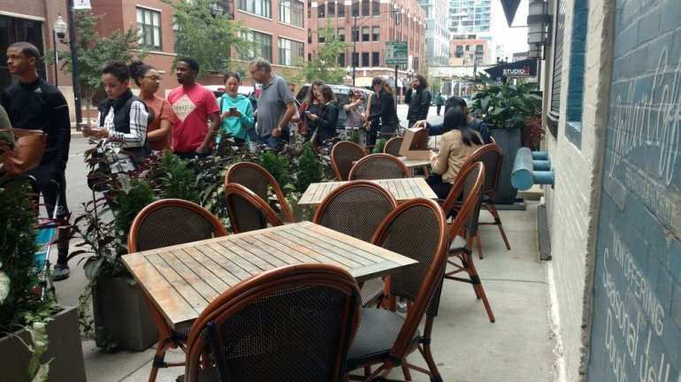 Chicago has always been on my list of cities to explore in the U.S. So far, in every city I’ve visited, it has, without fail, rained or snowed during my trip. Chicago was no exception! On a gloomy, threateningly rainy Sunday morning, I felt like a hot fluffy donut and coffee. I made the trip over to River North and arrived around 9:30AM, thinking I was early… but I was not early. The line had already already started forming down the sidewalk. I thought, “these must be some damn good doughnuts!” I can bear witness now – let that crowd attest to the truth.