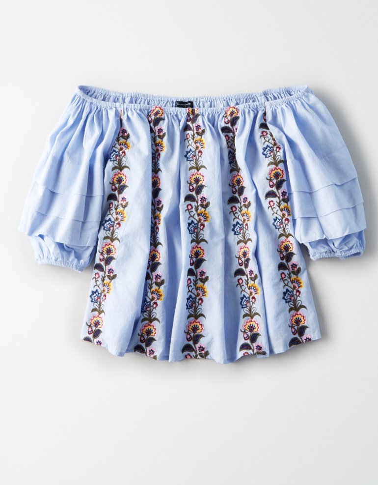 Looking to burst onto the scene? Pairing safety orange with its complementary colors on the color wheel make it stand out even more, creating an outfit that’ll be sure to get second glances. You have science on your side for a fashionable look! Have an orange shirt you don’t know what to do with? Try this classic navy-striped jacket for a bit of texture, perfect for a weekend getaway or vacation. Have a tangy-hued skirt just waiting to be worn? Try this light blue top from American Eagle for a sweet summer-to-fall look.