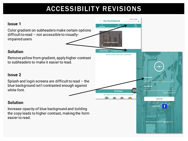 At this point, ScaviTrav’s lo-fi design grew exponentially. Applying “good design” guidelines, including visual design, accessibility guidelines along with peer feedback, exposed insights on how to polish the prototype further.
